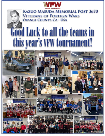 24Kazuo Masuda Memorial Post 3670Veterans of Foreign WarsOrange County, CA %u2022 USAGood Luck to all the teams in this year%u2019s VFW tournament!